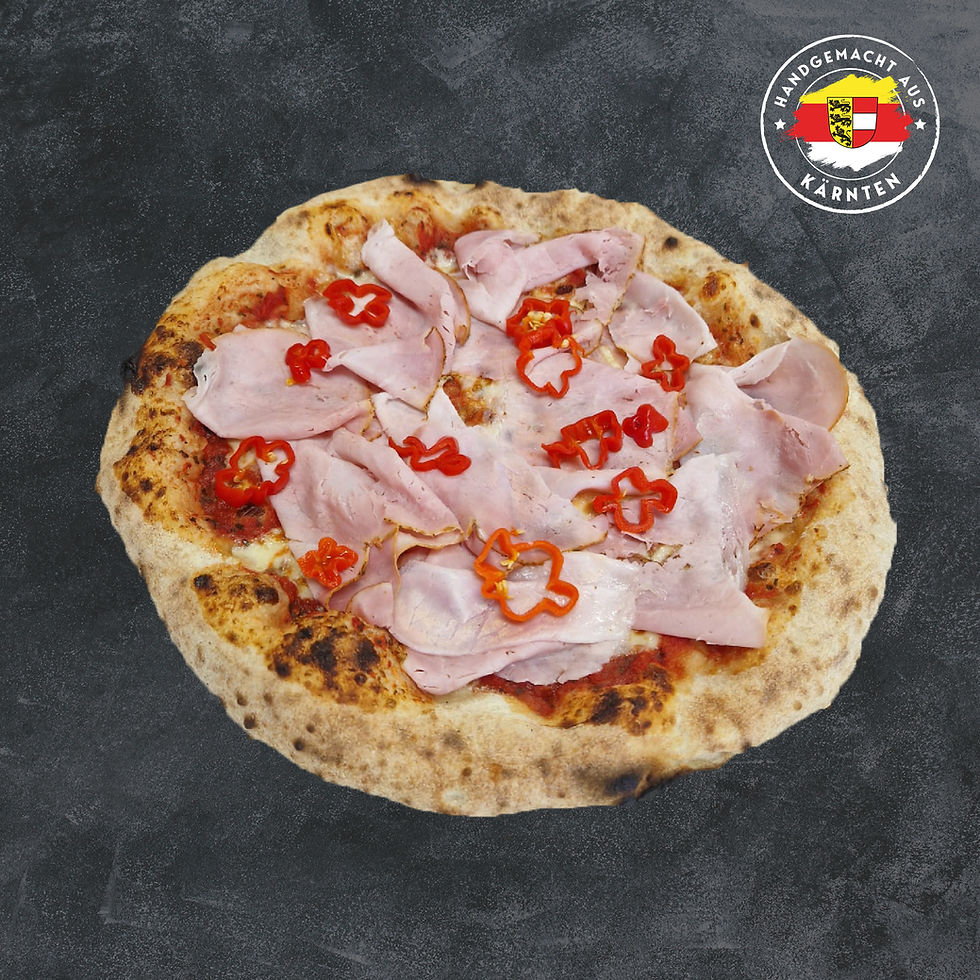 Der Pizzateig? Eine besondere Mischung aus verschiedenen italienischen Mehlen. Verfeinert mit Wasser von der Petzen, Meersalz, regionalem Sonnenblumenöl und nur ganz wenig Hefe.